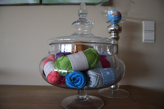 VerwijderenWat een mooi plekje in huis voor een bokaal met bolletjes wol. De labels maken het nog mooier. Echt een leuk idee.